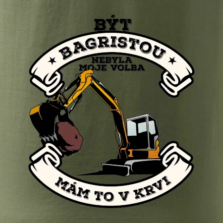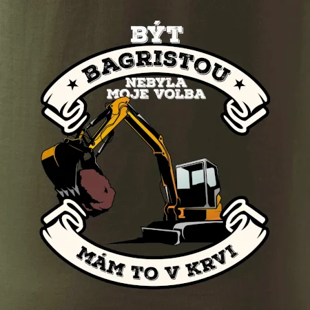 Triko pro bagristu zdobí velký bagr a nápis "Být bagristou nebyla moje volba, mám to v krvi". Triko s bagrem musí mít každý správný bagrista! Super dárek pro bagristu.