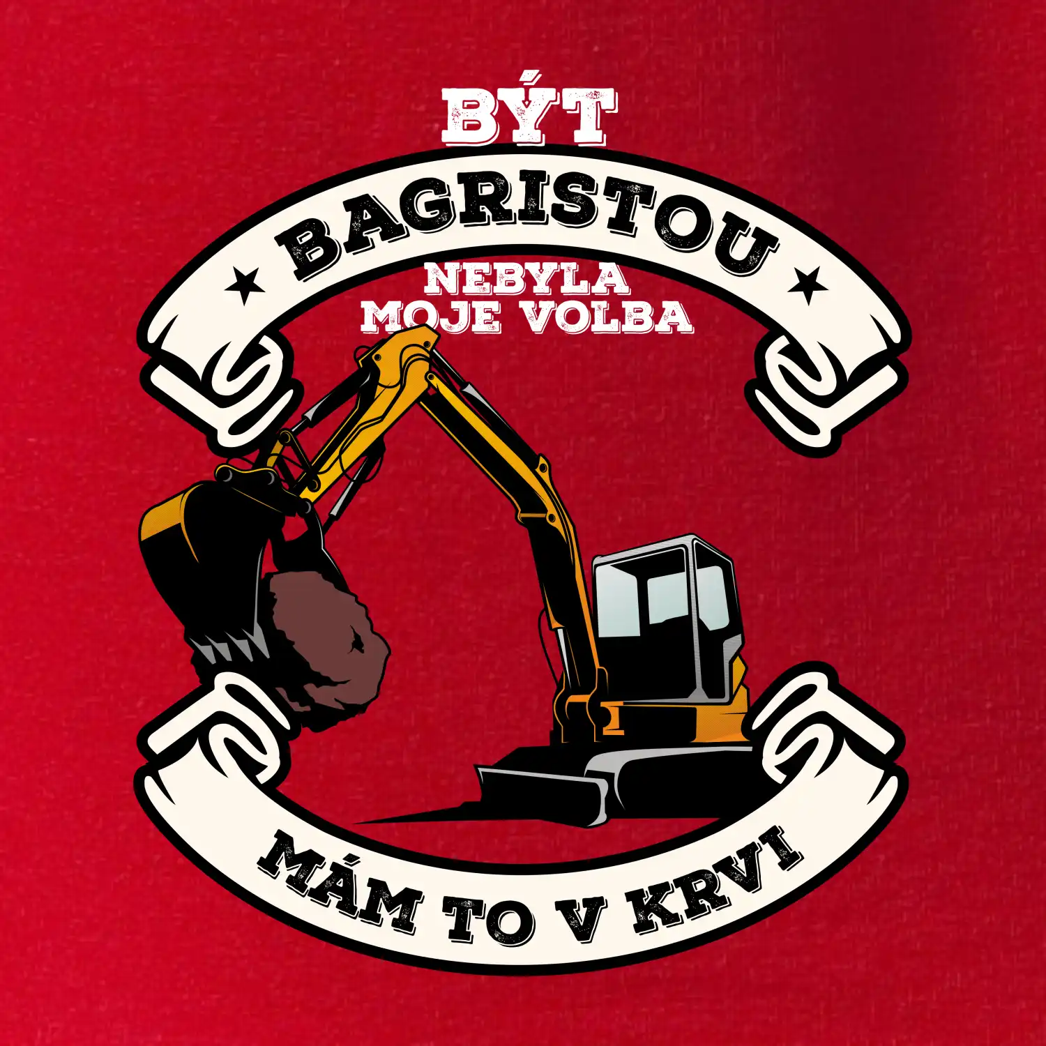 Triko pro bagristu zdobí velký bagr a nápis "Být bagristou nebyla moje volba, mám to v krvi". Triko s bagrem musí mít každý správný bagrista! Super dárek pro bagristu.