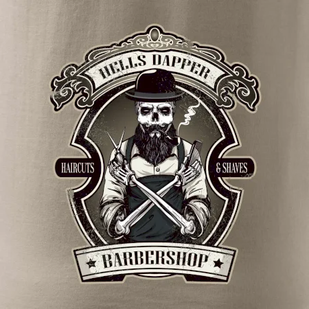 Triko s motivem pekelný holič by měl mít každý správný barber. Triko pro kadeřníka, na kterém je kadeřník kostlivec je vhodný dárek pro holiče v každém stylovém holičství. Triko s motivem povolání je správný dárek pro holiče.