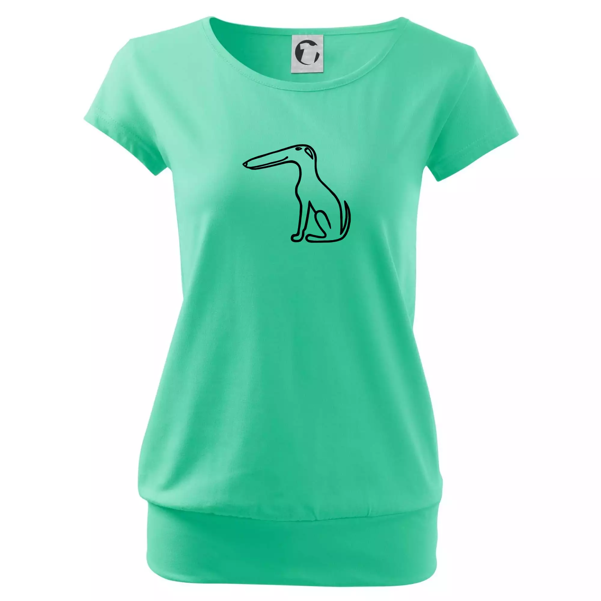 Trendové dámské triko s velmi krátkým rukávem, volnějšího střihu, v dolním kraji všité do širokého lemu. Kulatý průkrčník s úzkým lemem ze shodného materiálu.
