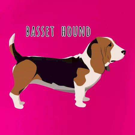 Basset hound pes s nápisem