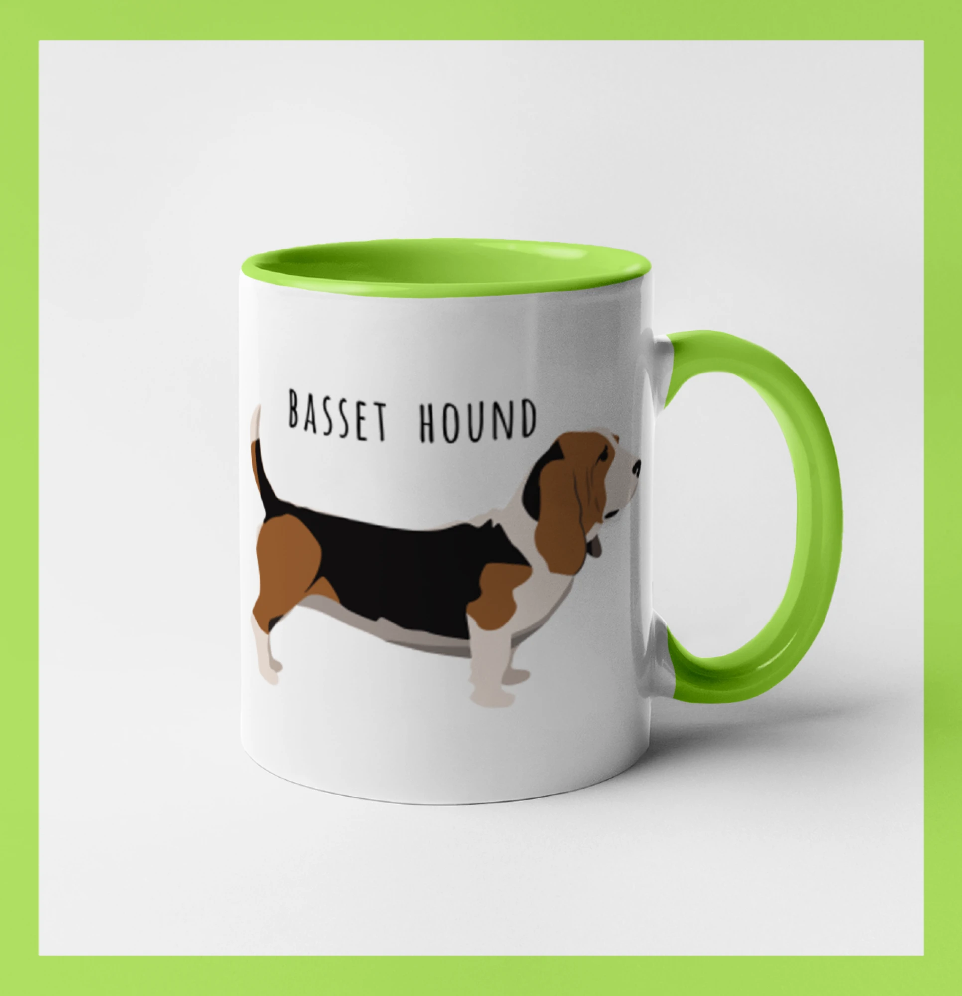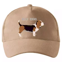 Basset hound pes s nápisem
