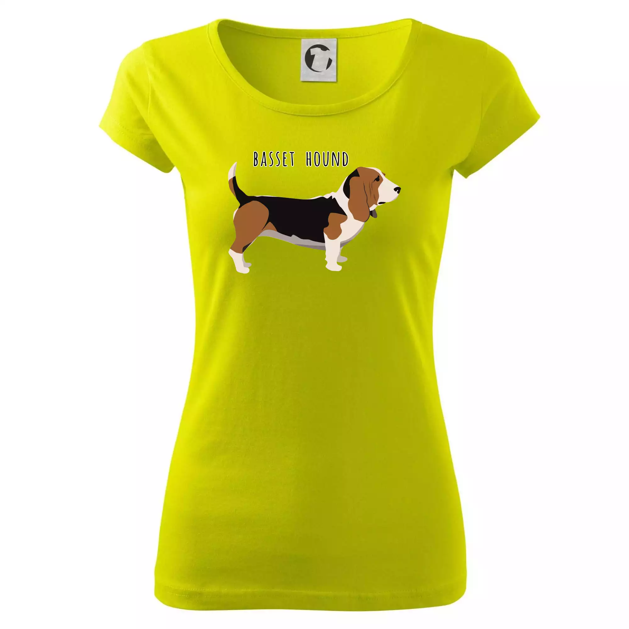 Basset hound pes s nápisem