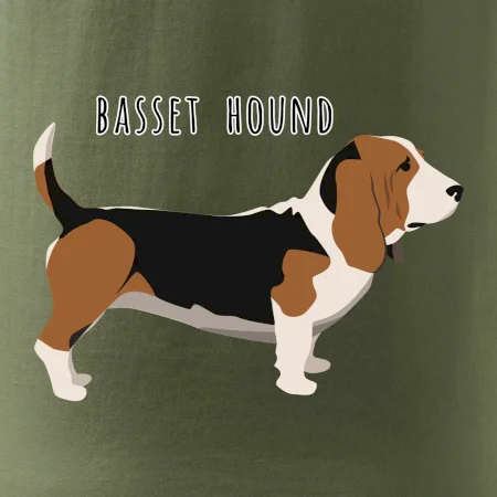 Basset hound pes s nápisem
