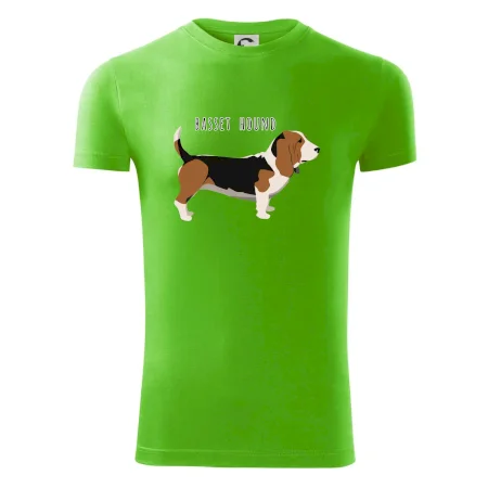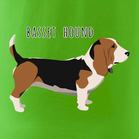 Basset hound pes s nápisem