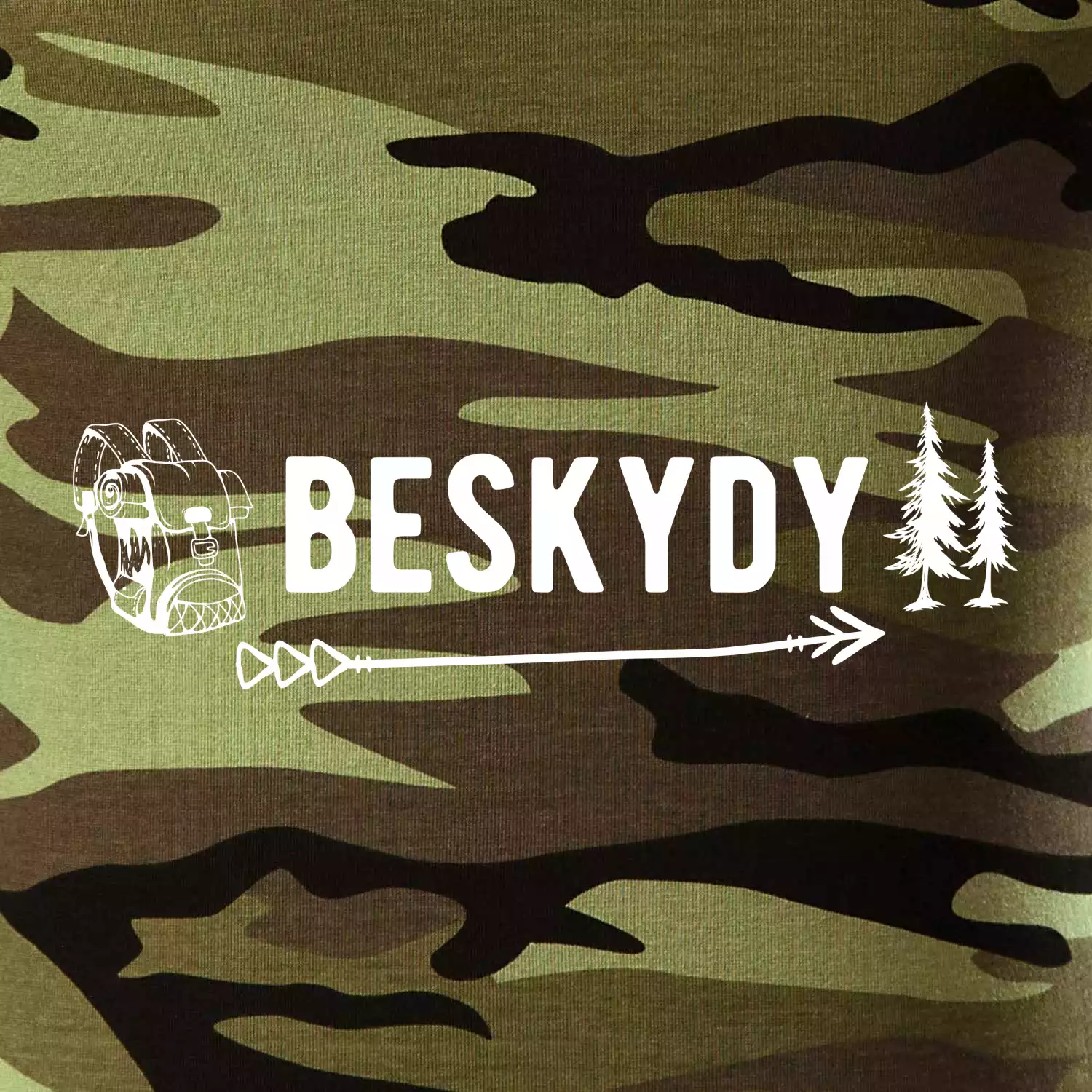 Tričko střední gramáže v barvách camouflage. Střih s bočními švy. Lem průkrčníku ze žebrového úpletu s přídavkem 5 % elastanu. Vnitřní část zadního průkrčníku začištěna páskou v barvě camouflage.