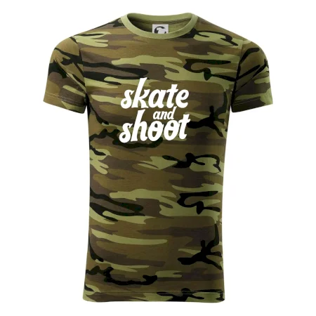 Tričko střední gramáže v barvách camouflage. Střih s bočními švy. Lem průkrčníku ze žebrového úpletu s přídavkem 5 % elastanu. Vnitřní část zadního průkrčníku začištěna páskou v barvě camouflage.