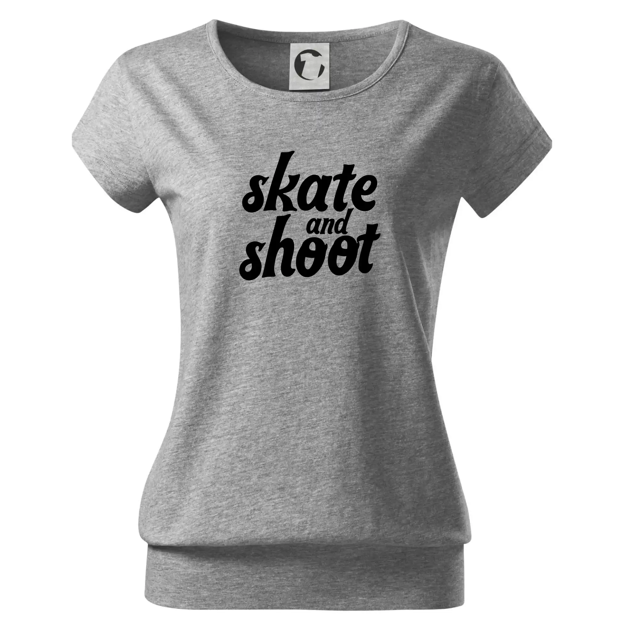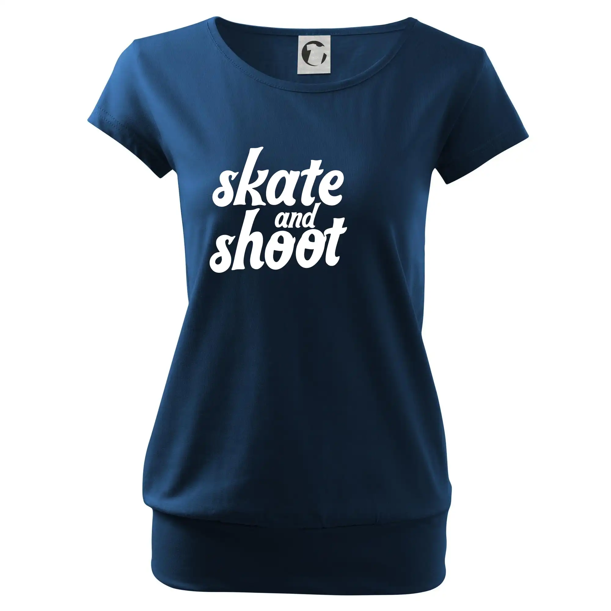 Trendové dámské triko s velmi krátkým rukávem, volnějšího střihu, v dolním kraji všité do širokého lemu. Kulatý průkrčník s úzkým lemem ze shodného materiálu.