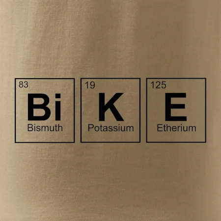 Cyklistické triko pro někoho, kdo má rád jízdu na kole. Z prvků periodické tabulky lze poskládat mnoho. Proč si tedy nevybrat ten správný prvek a na triko si nenatisknout třeba nápis BiKE. Ukážeš tak, že cyklistika je tvůj koníček. Vtipné trička a mikiny s tématikou cyklistiky a periodických tabulek. Triko pro cyklistu. Trička a mikiny pro milovníky chemie a cyklistiky! Periodické tabulky frčí!