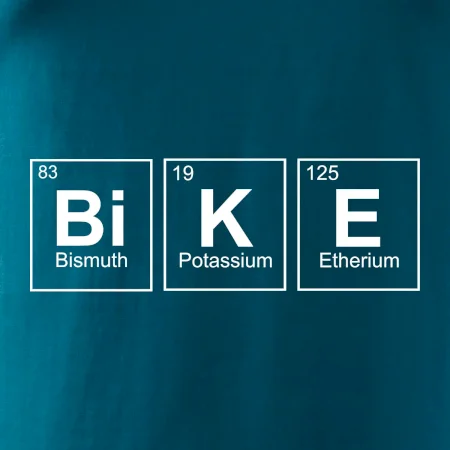 Cyklistické triko pro někoho, kdo má rád jízdu na kole. Z prvků periodické tabulky lze poskládat mnoho. Proč si tedy nevybrat ten správný prvek a na triko si nenatisknout třeba nápis BiKE. Ukážeš tak, že cyklistika je tvůj koníček. Vtipné trička a mikiny s tématikou cyklistiky a periodických tabulek. Triko pro cyklistu. Trička a mikiny pro milovníky chemie a cyklistiky! Periodické tabulky frčí!