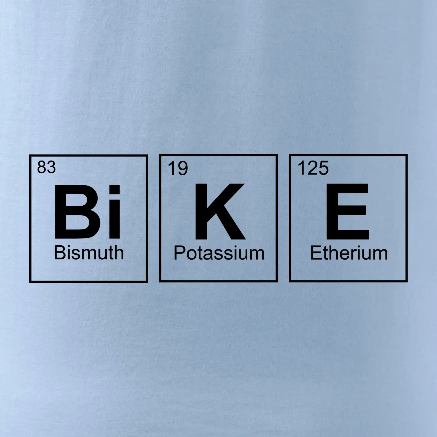 Cyklistické triko pro někoho, kdo má rád jízdu na kole. Z prvků periodické tabulky lze poskládat mnoho. Proč si tedy nevybrat ten správný prvek a na triko si nenatisknout třeba nápis BiKE. Ukážeš tak, že cyklistika je tvůj koníček. Vtipné trička a mikiny s tématikou cyklistiky a periodických tabulek. Triko pro cyklistu. Trička a mikiny pro milovníky chemie a cyklistiky! Periodické tabulky frčí!