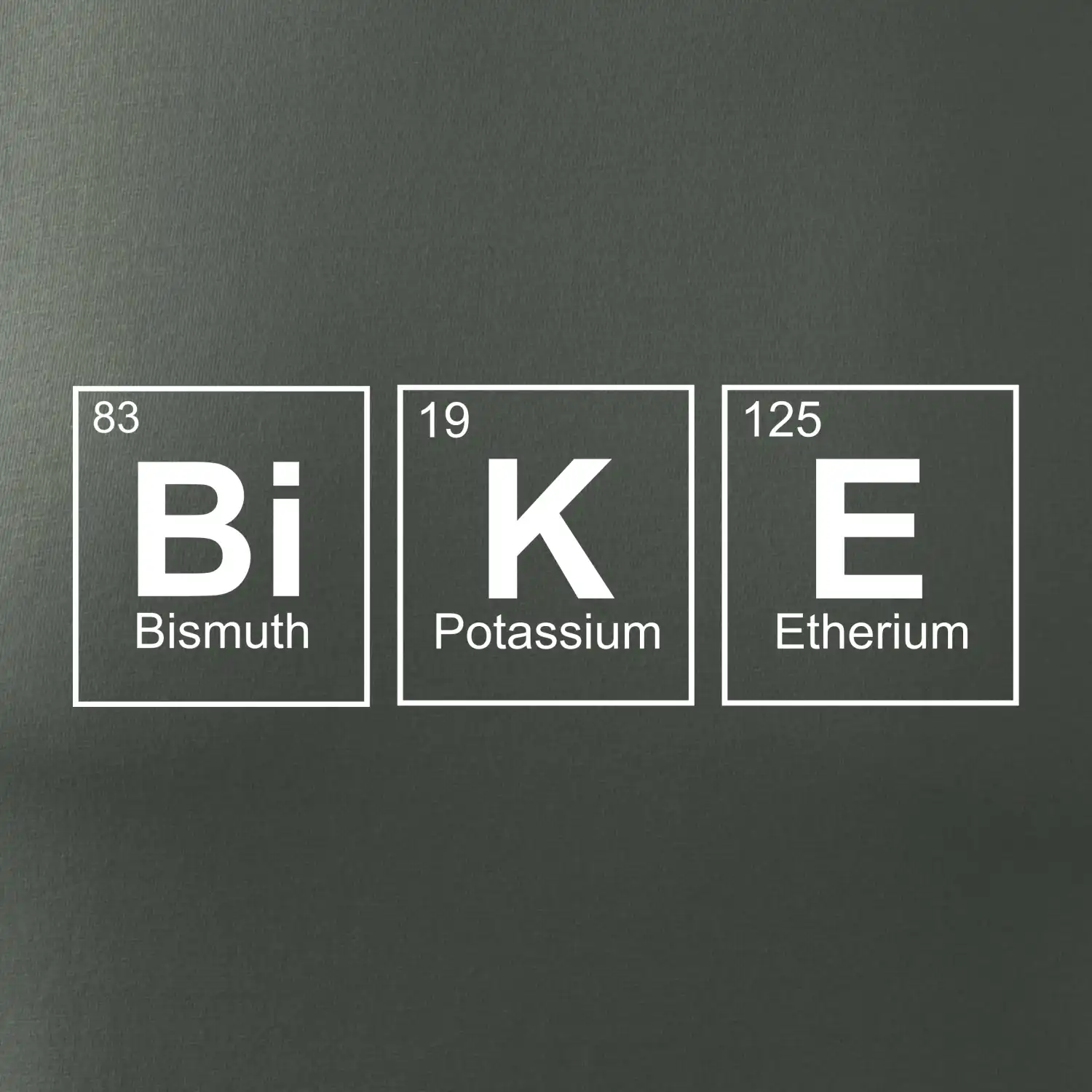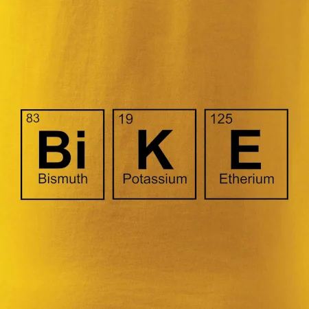 Cyklistické triko pro někoho, kdo má rád jízdu na kole. Z prvků periodické tabulky lze poskládat mnoho. Proč si tedy nevybrat ten správný prvek a na triko si nenatisknout třeba nápis BiKE. Ukážeš tak, že cyklistika je tvůj koníček. Vtipné trička a mikiny s tématikou cyklistiky a periodických tabulek. Triko pro cyklistu. Trička a mikiny pro milovníky chemie a cyklistiky! Periodické tabulky frčí!
