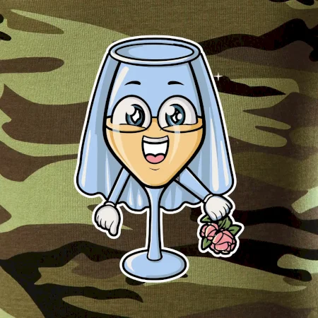 Sklenka vína se závojem pro budoucí nevěstu. Triko na rozlučku se svobodou.