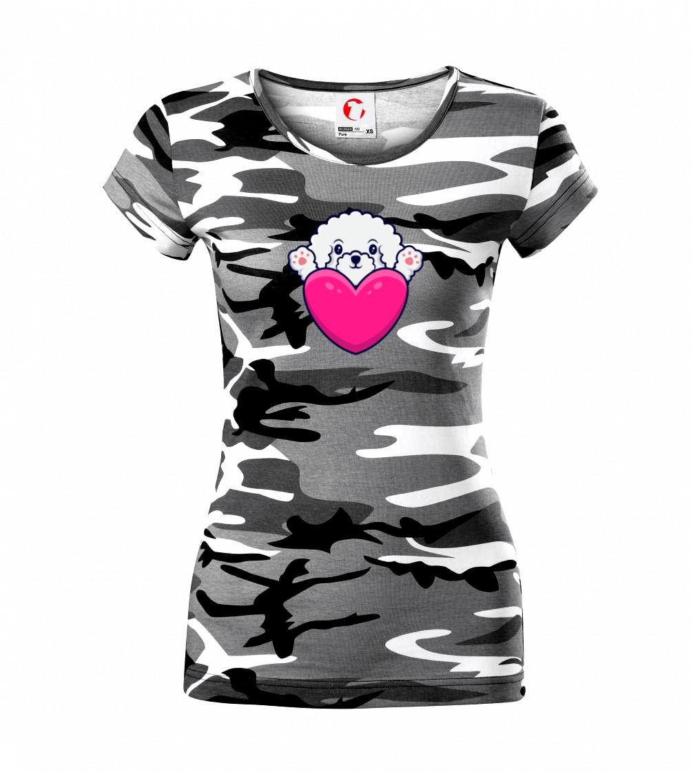 Triko s bišonkem jako skvělý dárek pro paničku bišonka. Bišonek na triku je esence roztomilosti. Krásný bílý malý pes společenské povahy je jeden z nejroztomilejších, které si můžete u nás pořídit.
