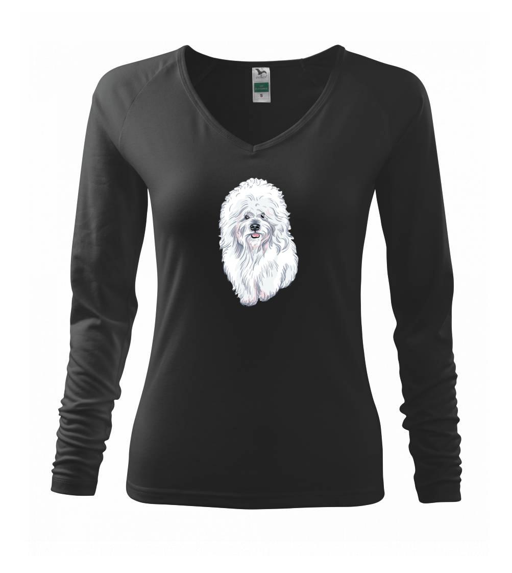 Triko s kresleným bišonkem jako skvělý dárek pro paničku bišonka. Bišonek na triku je esence roztomilosti. Krásný bílý malý pes společenské povahy je jeden z nejroztomilejších, které si můžete u nás pořídit.