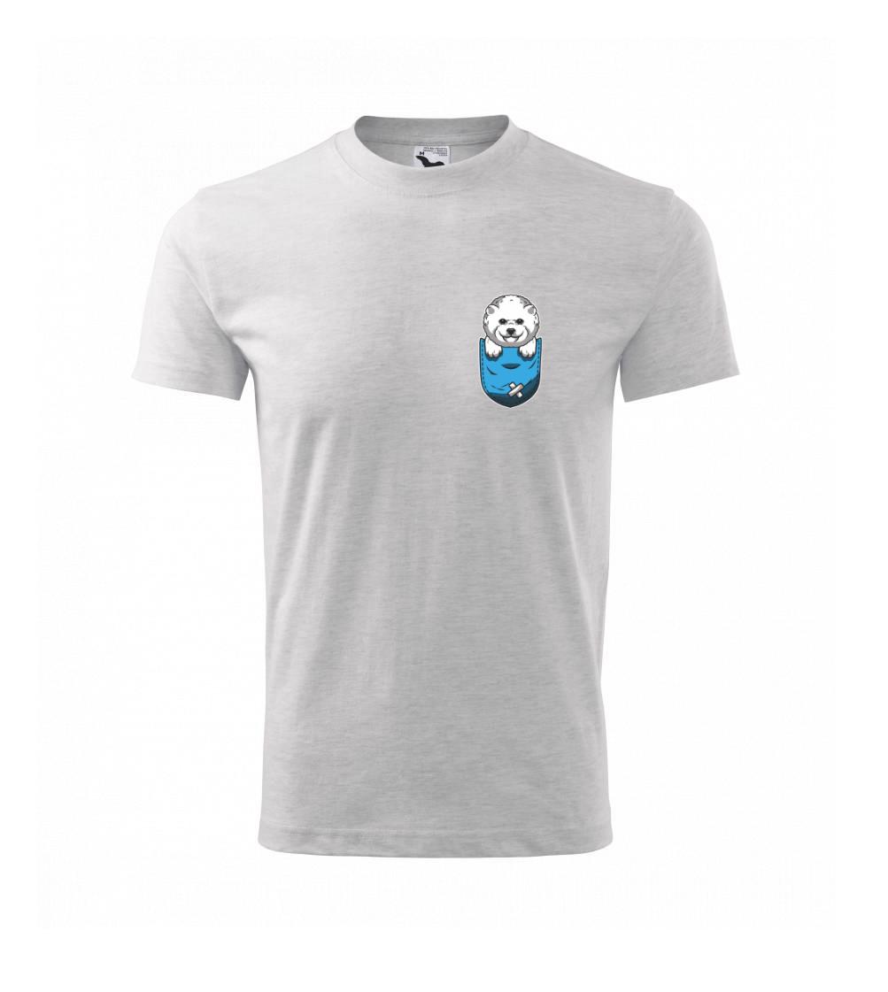 Triko s bišonkem jako skvělý dárek pro paničku bišonka. Bišonek na triku je esence roztomilosti. Krásný bílý malý pes společenské povahy je jeden z nejroztomilejších, které si můžete u nás pořídit.