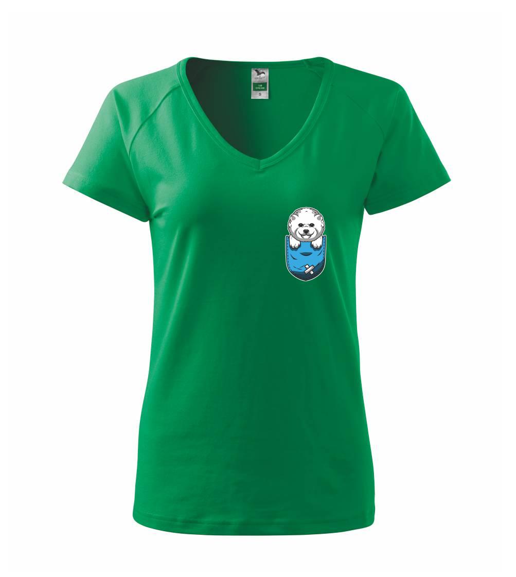 Triko s bišonkem jako skvělý dárek pro paničku bišonka. Bišonek na triku je esence roztomilosti. Krásný bílý malý pes společenské povahy je jeden z nejroztomilejších, které si můžete u nás pořídit.