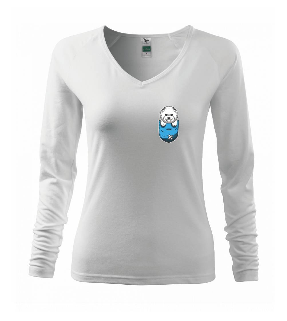 Triko s bišonkem jako skvělý dárek pro paničku bišonka. Bišonek na triku je esence roztomilosti. Krásný bílý malý pes společenské povahy je jeden z nejroztomilejších, které si můžete u nás pořídit.