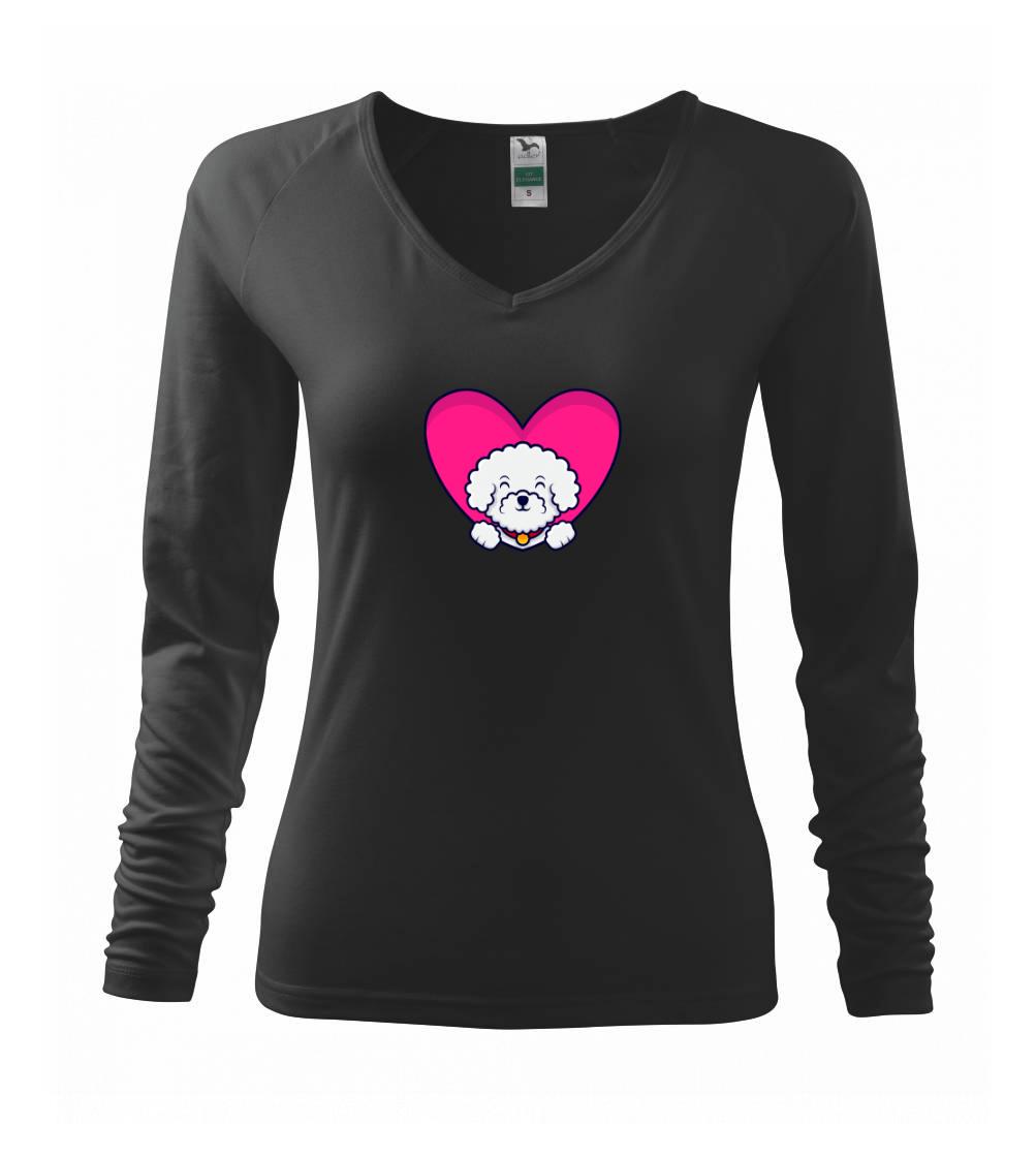 Triko s bišonkem jako skvělý dárek pro paničku bišonka. Bišonek na triku je esence roztomilosti. Krásný bílý malý pes společenské povahy je jeden z nejroztomilejších, které si můžete u nás pořídit.