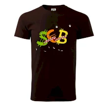 Měnové triko se symboly dolar, euro a bitcoin. Triko pro směnárníka nebo bankéře.