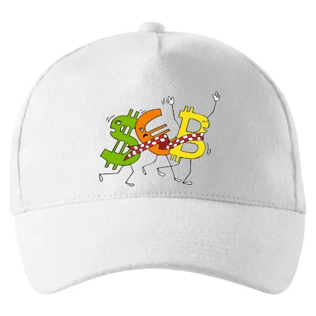 Měnové triko se symboly dolar, euro a bitcoin. Triko pro směnárníka nebo bankéře.