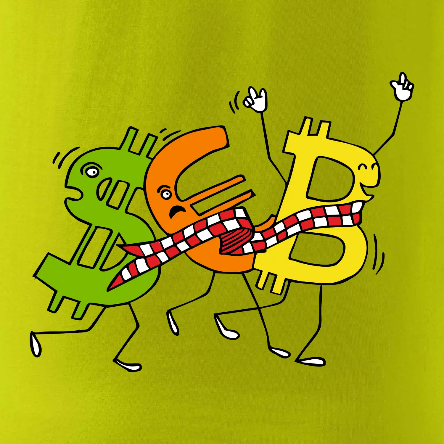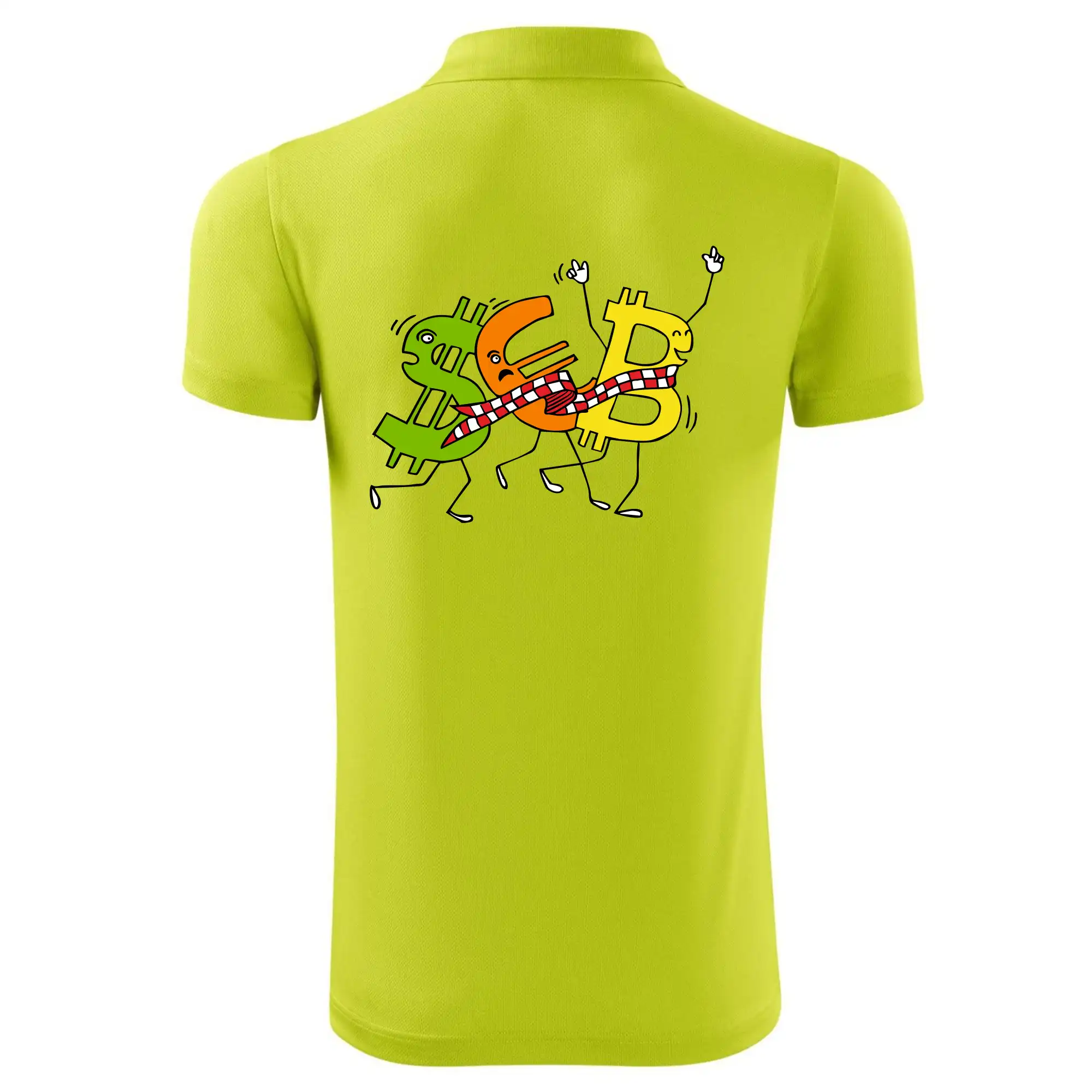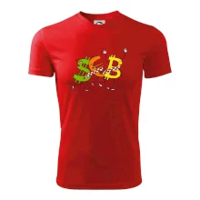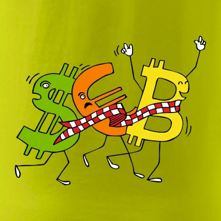 Měnové triko se symboly dolar, euro a bitcoin. Triko pro směnárníka nebo bankéře.