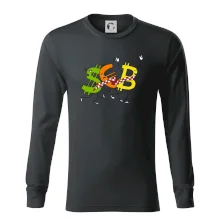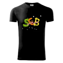 Měnové triko se symboly dolar, euro a bitcoin. Triko pro směnárníka nebo bankéře.