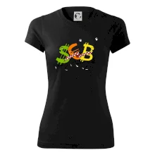 Měnové triko se symboly dolar, euro a bitcoin. Triko pro směnárníka nebo bankéře.
