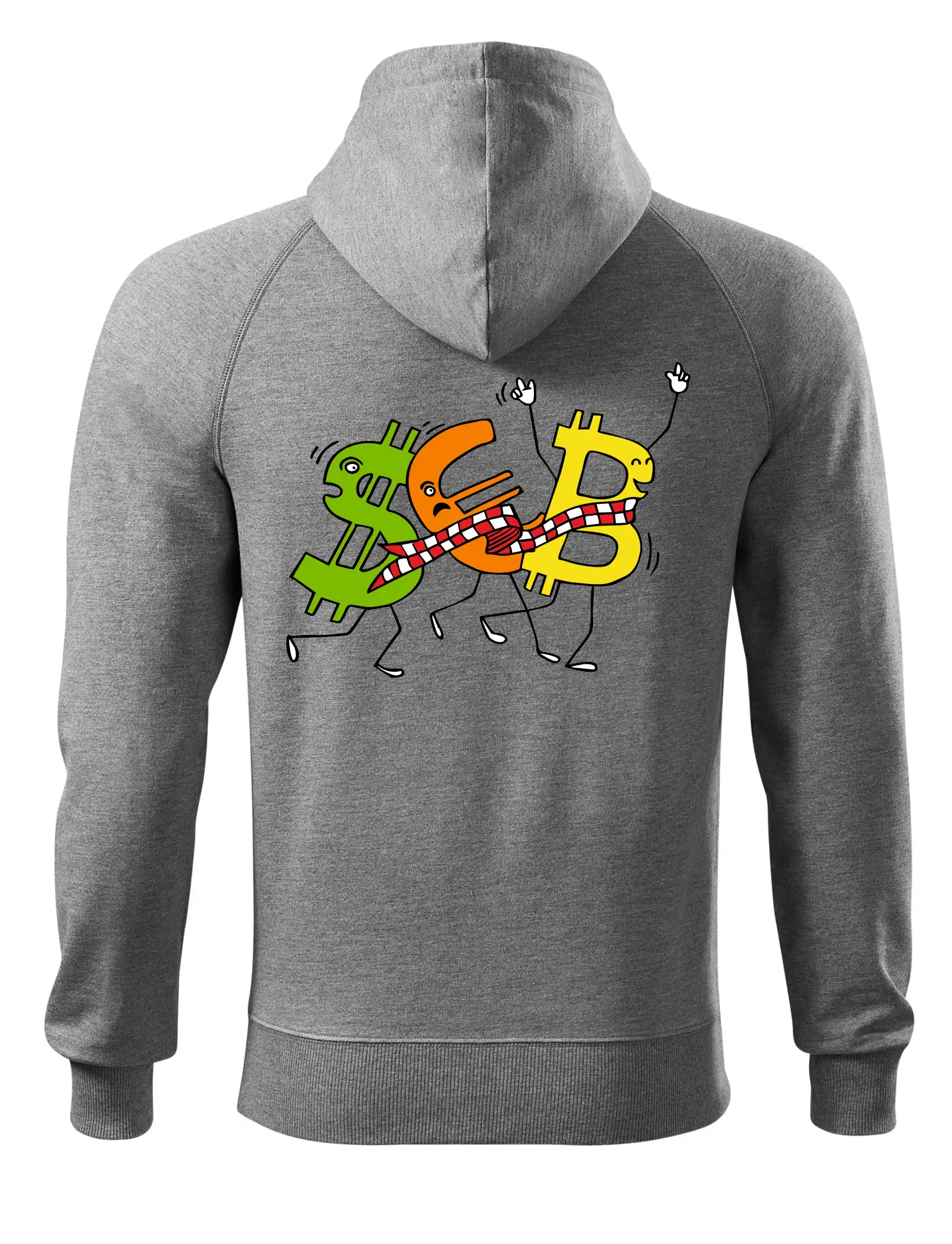 Měnové triko se symboly dolar, euro a bitcoin. Triko pro směnárníka nebo bankéře.