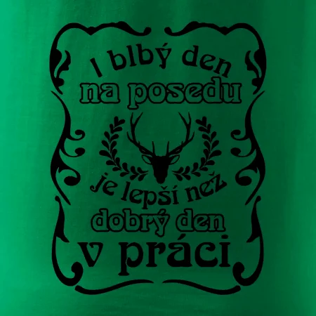 Triko pro myslivce s motivem posedu. Každý myslivec tráví nejraději svůj čas na posedu a i blbý den na posedu, je lepší, než dobrý den v práci.