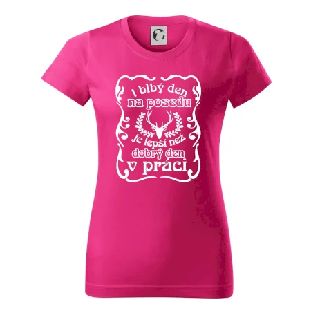 Triko pro myslivce s motivem posedu. Každý myslivec tráví nejraději svůj čas na posedu a i blbý den na posedu, je lepší, než dobrý den v práci.