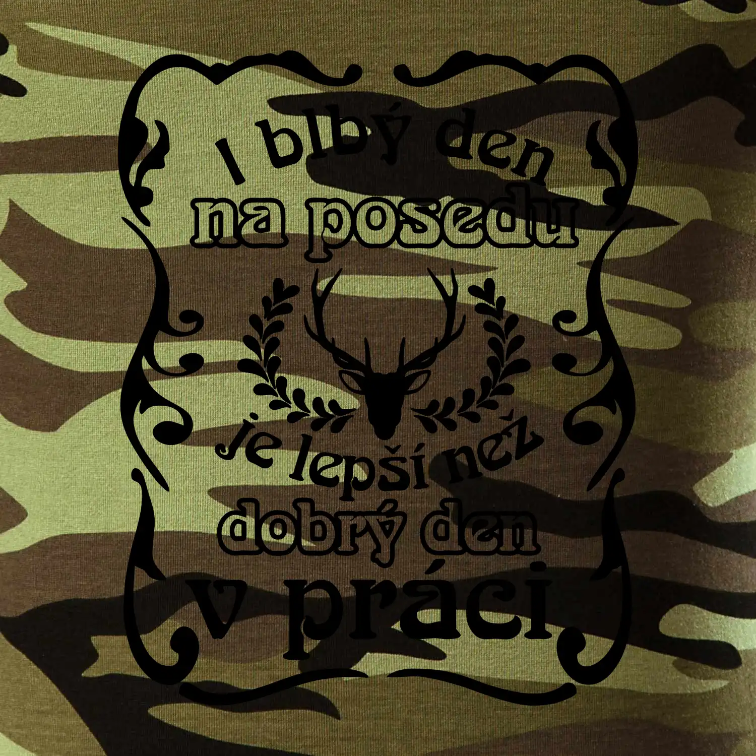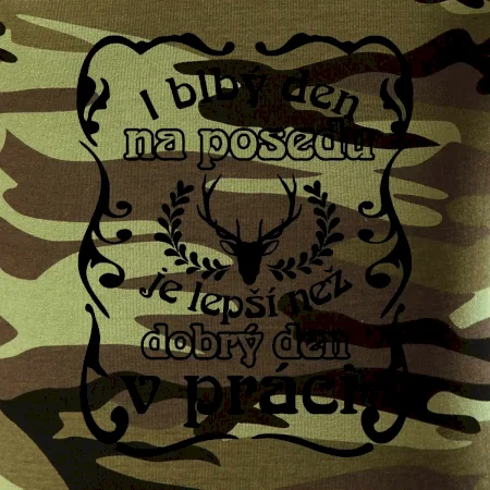 Triko pro myslivce s motivem posedu. Každý myslivec tráví nejraději svůj čas na posedu a i blbý den na posedu, je lepší, než dobrý den v práci.