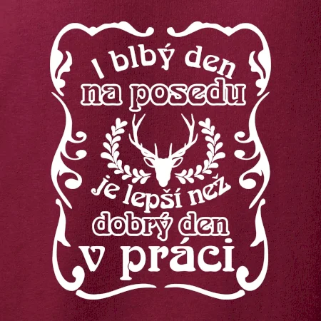 Triko pro myslivce s motivem posedu. Každý myslivec tráví nejraději svůj čas na posedu a i blbý den na posedu, je lepší, než dobrý den v práci.