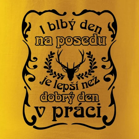 Triko pro myslivce s motivem posedu. Každý myslivec tráví nejraději svůj čas na posedu a i blbý den na posedu, je lepší, než dobrý den v práci.