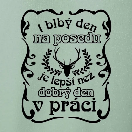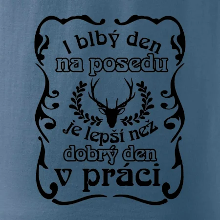 Triko pro myslivce s motivem posedu. Každý myslivec tráví nejraději svůj čas na posedu a i blbý den na posedu, je lepší, než dobrý den v práci.