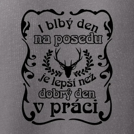 Triko pro myslivce s motivem posedu. Každý myslivec tráví nejraději svůj čas na posedu a i blbý den na posedu, je lepší, než dobrý den v práci.