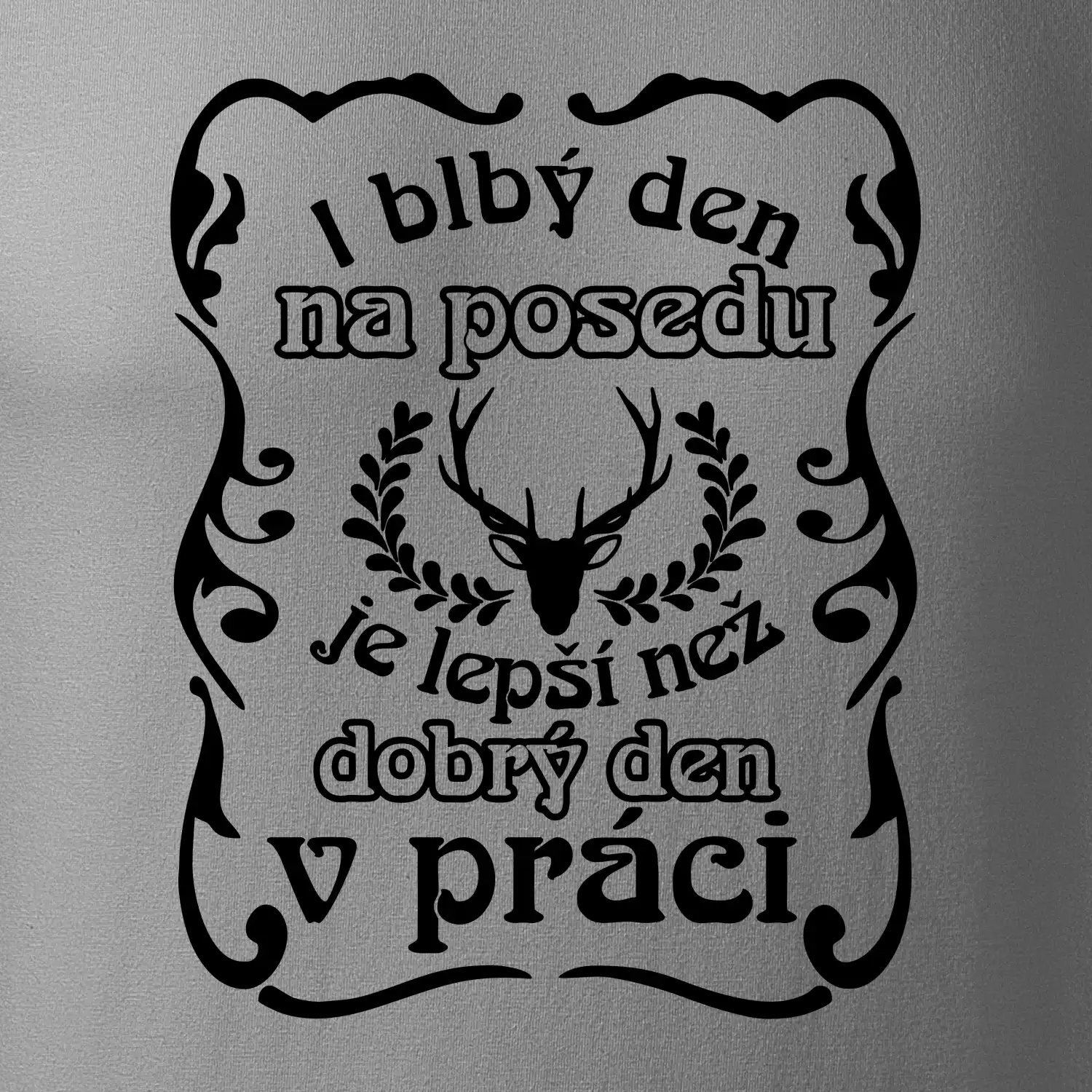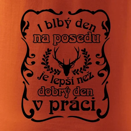 Triko pro myslivce s motivem posedu. Každý myslivec tráví nejraději svůj čas na posedu a i blbý den na posedu, je lepší, než dobrý den v práci.