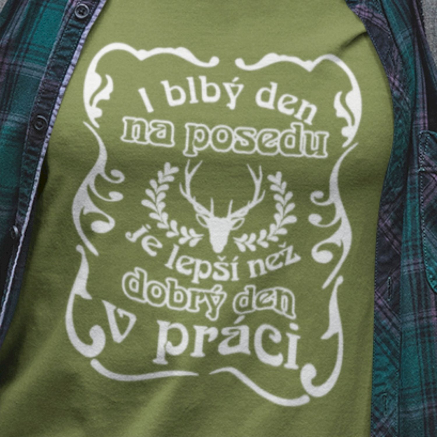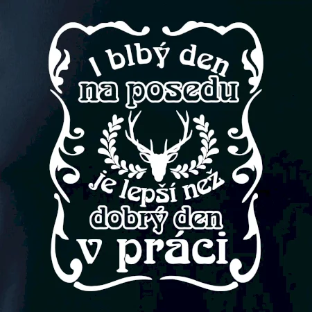 Triko pro myslivce s motivem posedu. Každý myslivec tráví nejraději svůj čas na posedu a i blbý den na posedu, je lepší, než dobrý den v práci.