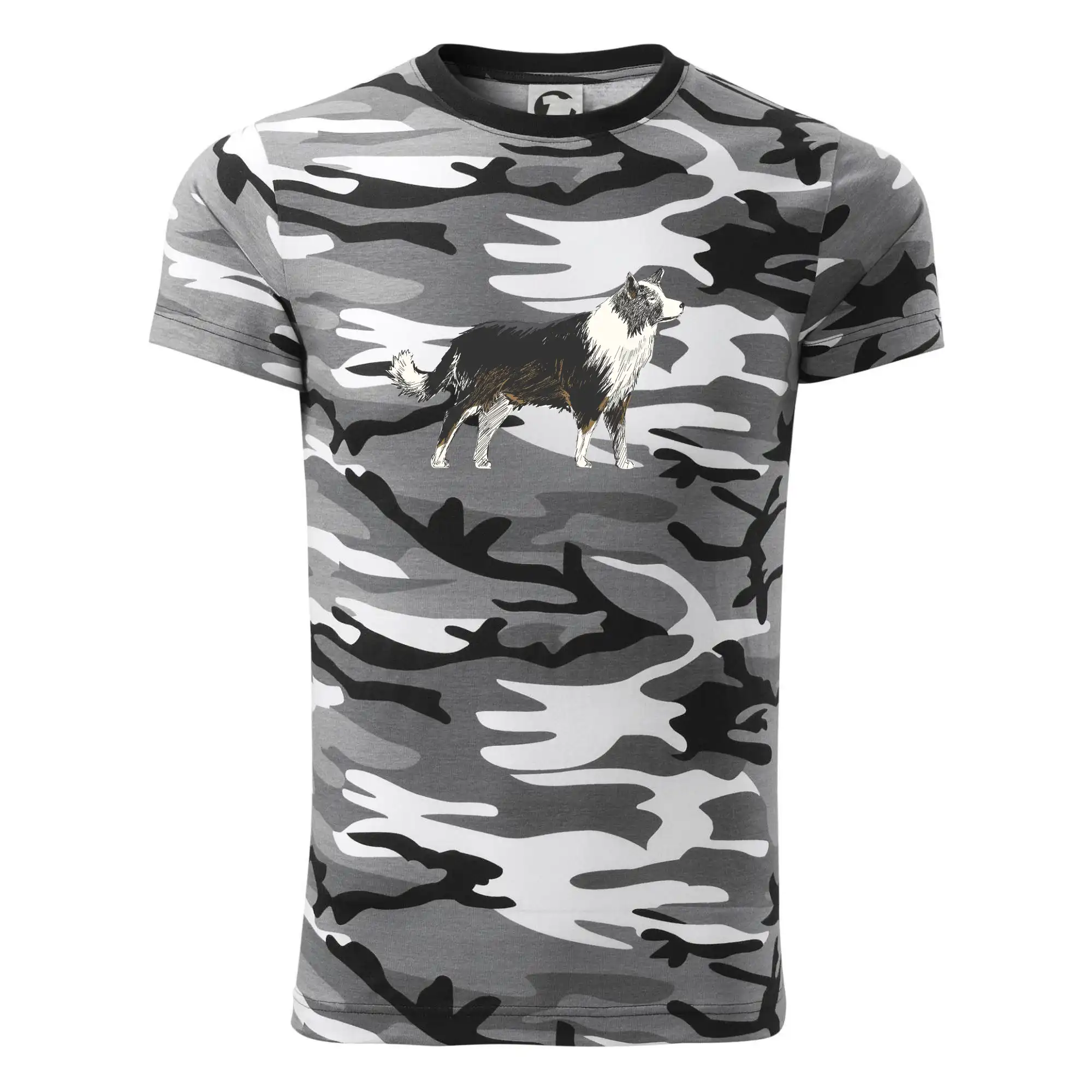 Tento motiv je stvořený pro všechny milovníky border kolií! Ať už jde o tričko nebo mikinu, stylový kreslený motiv border kolie ti vykouzlí úsměv na tváři a dodá každodennímu outfitu šmrnc. Border kolie jsou známé pro svou energii a inteligenci – proč by neměly zdobit i tvoje oblečení?