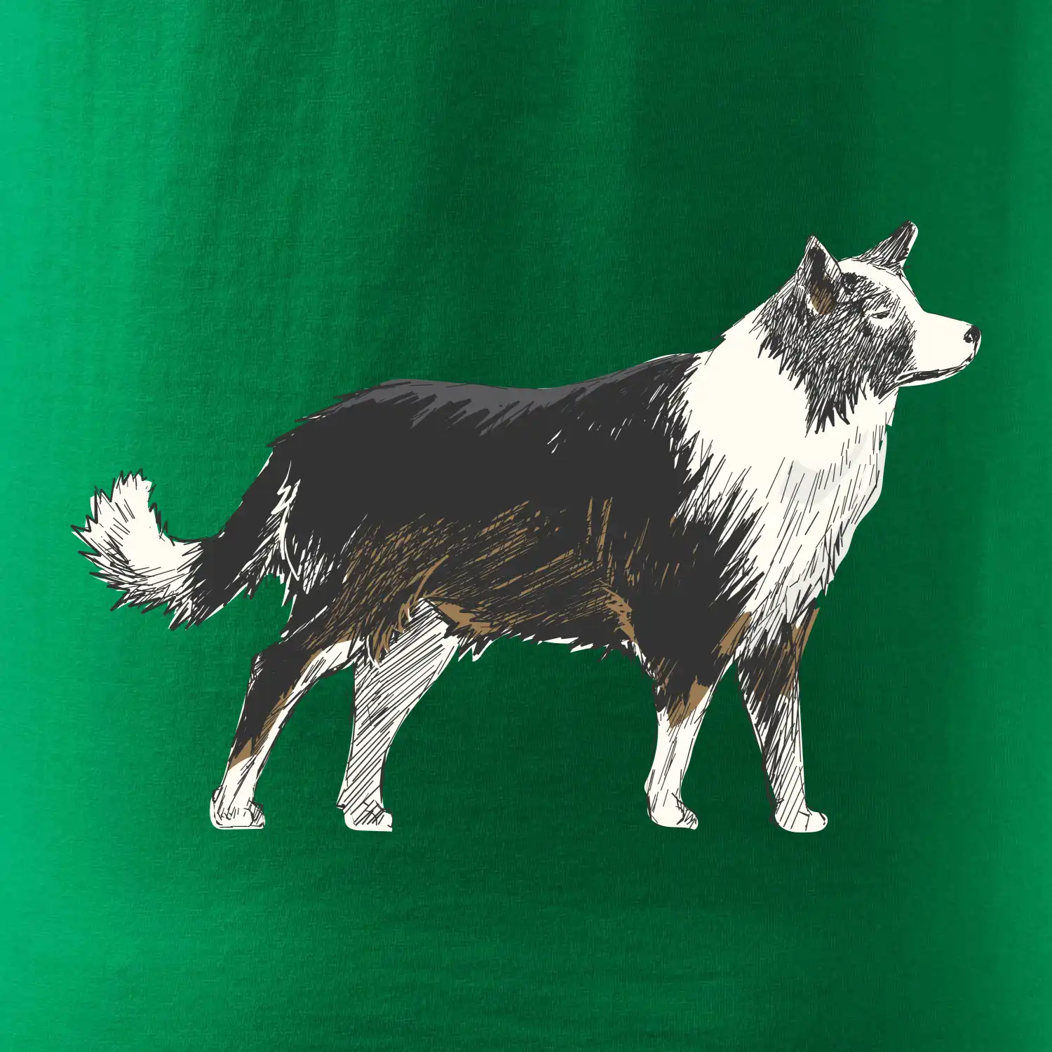 Tento motiv je stvořený pro všechny milovníky border kolií! Ať už jde o tričko nebo mikinu, stylový kreslený motiv border kolie ti vykouzlí úsměv na tváři a dodá každodennímu outfitu šmrnc. Border kolie jsou známé pro svou energii a inteligenci – proč by neměly zdobit i tvoje oblečení?