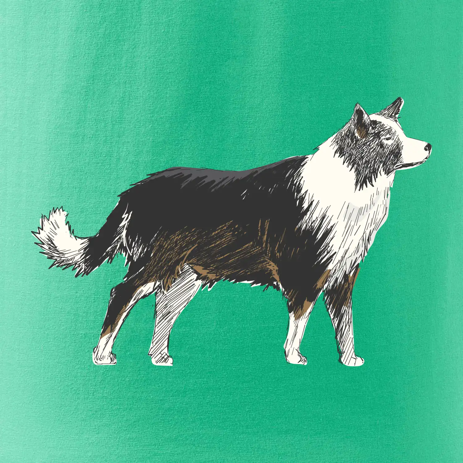 Tento motiv je stvořený pro všechny milovníky border kolií! Ať už jde o tričko nebo mikinu, stylový kreslený motiv border kolie ti vykouzlí úsměv na tváři a dodá každodennímu outfitu šmrnc. Border kolie jsou známé pro svou energii a inteligenci – proč by neměly zdobit i tvoje oblečení?