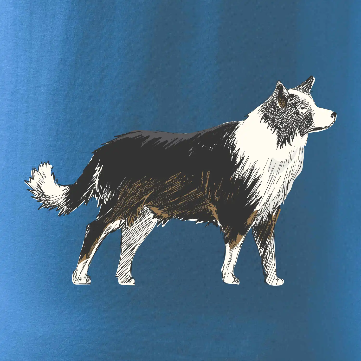 Tento motiv je stvořený pro všechny milovníky border kolií! Ať už jde o tričko nebo mikinu, stylový kreslený motiv border kolie ti vykouzlí úsměv na tváři a dodá každodennímu outfitu šmrnc. Border kolie jsou známé pro svou energii a inteligenci – proč by neměly zdobit i tvoje oblečení?