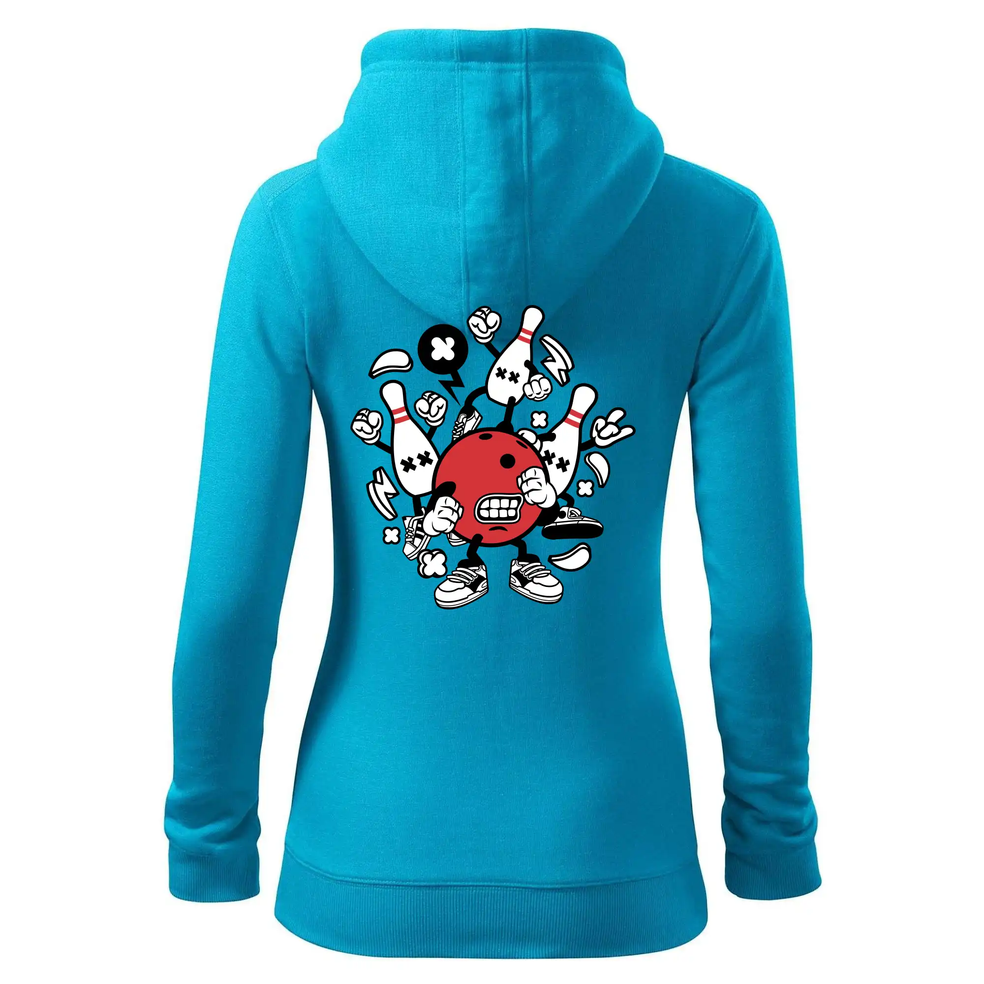 Triko pro hráče bowlingu, na kterém je bowlingová koule a kuželky. Bowlingové triko by měl mít každý bowlingový hráč. S bowlingovým trikem to bude samý strike, žádná kuželka neunikne!