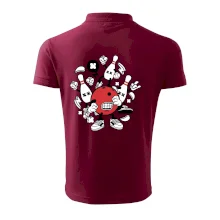 Triko pro hráče bowlingu, na kterém je bowlingová koule a kuželky. Bowlingové triko by měl mít každý bowlingový hráč. S bowlingovým trikem to bude samý strike, žádná kuželka neunikne!