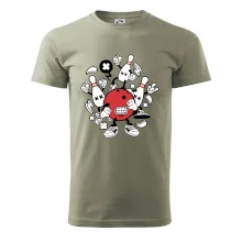 Triko pro hráče bowlingu, na kterém je bowlingová koule a kuželky. Bowlingové triko by měl mít každý bowlingový hráč. S bowlingovým trikem to bude samý strike, žádná kuželka neunikne!