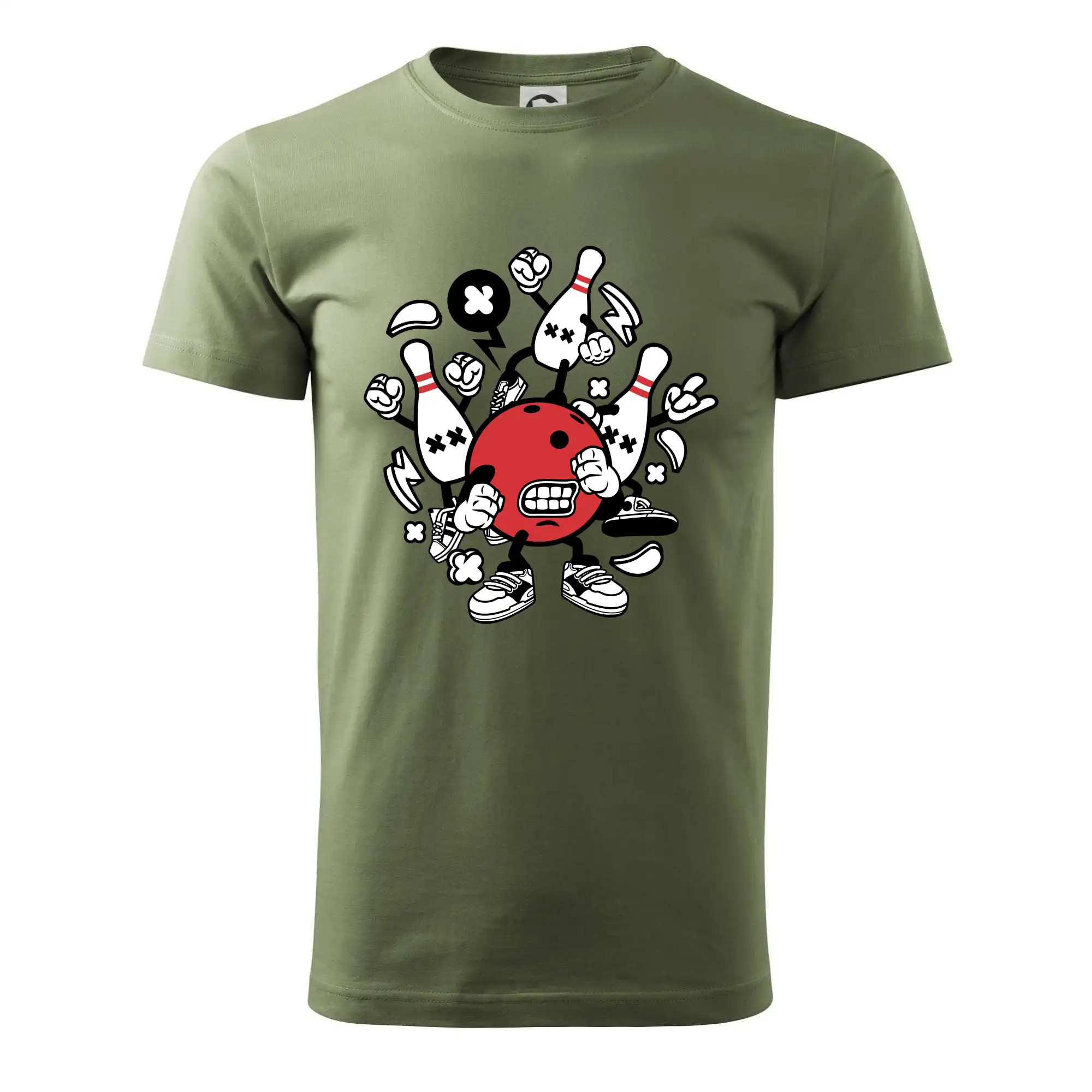 Triko pro hráče bowlingu, na kterém je bowlingová koule a kuželky. Bowlingové triko by měl mít každý bowlingový hráč. S bowlingovým trikem to bude samý strike, žádná kuželka neunikne!