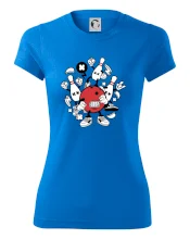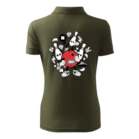 Triko pro hráče bowlingu, na kterém je bowlingová koule a kuželky. Bowlingové triko by měl mít každý bowlingový hráč. S bowlingovým trikem to bude samý strike, žádná kuželka neunikne!