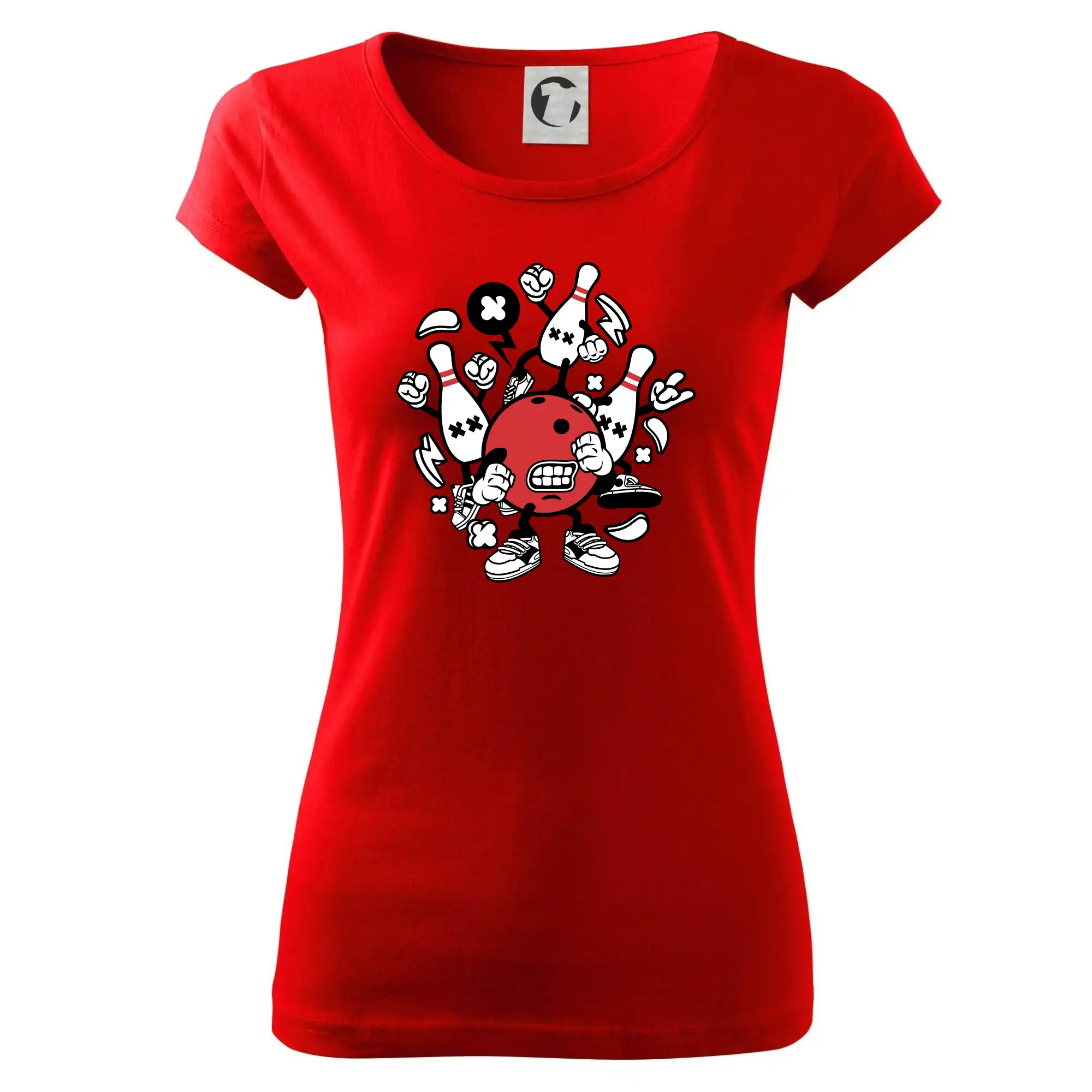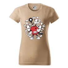 Triko pro hráče bowlingu, na kterém je bowlingová koule a kuželky. Bowlingové triko by měl mít každý bowlingový hráč. S bowlingovým trikem to bude samý strike, žádná kuželka neunikne!