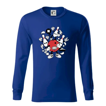 Triko pro hráče bowlingu, na kterém je bowlingová koule a kuželky. Bowlingové triko by měl mít každý bowlingový hráč. S bowlingovým trikem to bude samý strike, žádná kuželka neunikne!