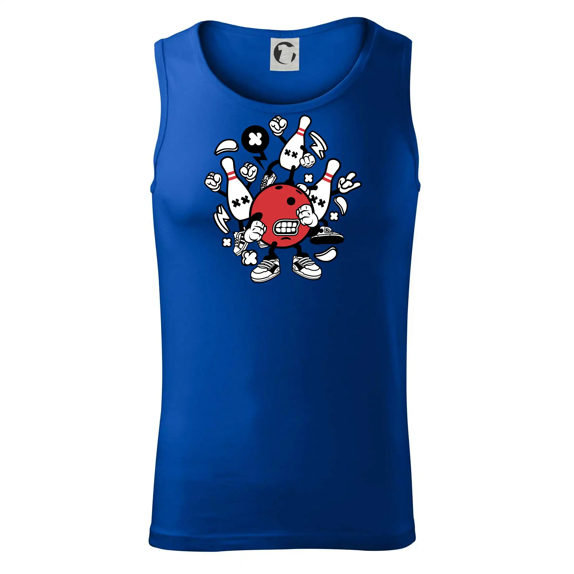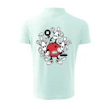 Triko pro hráče bowlingu, na kterém je bowlingová koule a kuželky. Bowlingové triko by měl mít každý bowlingový hráč. S bowlingovým trikem to bude samý strike, žádná kuželka neunikne!
